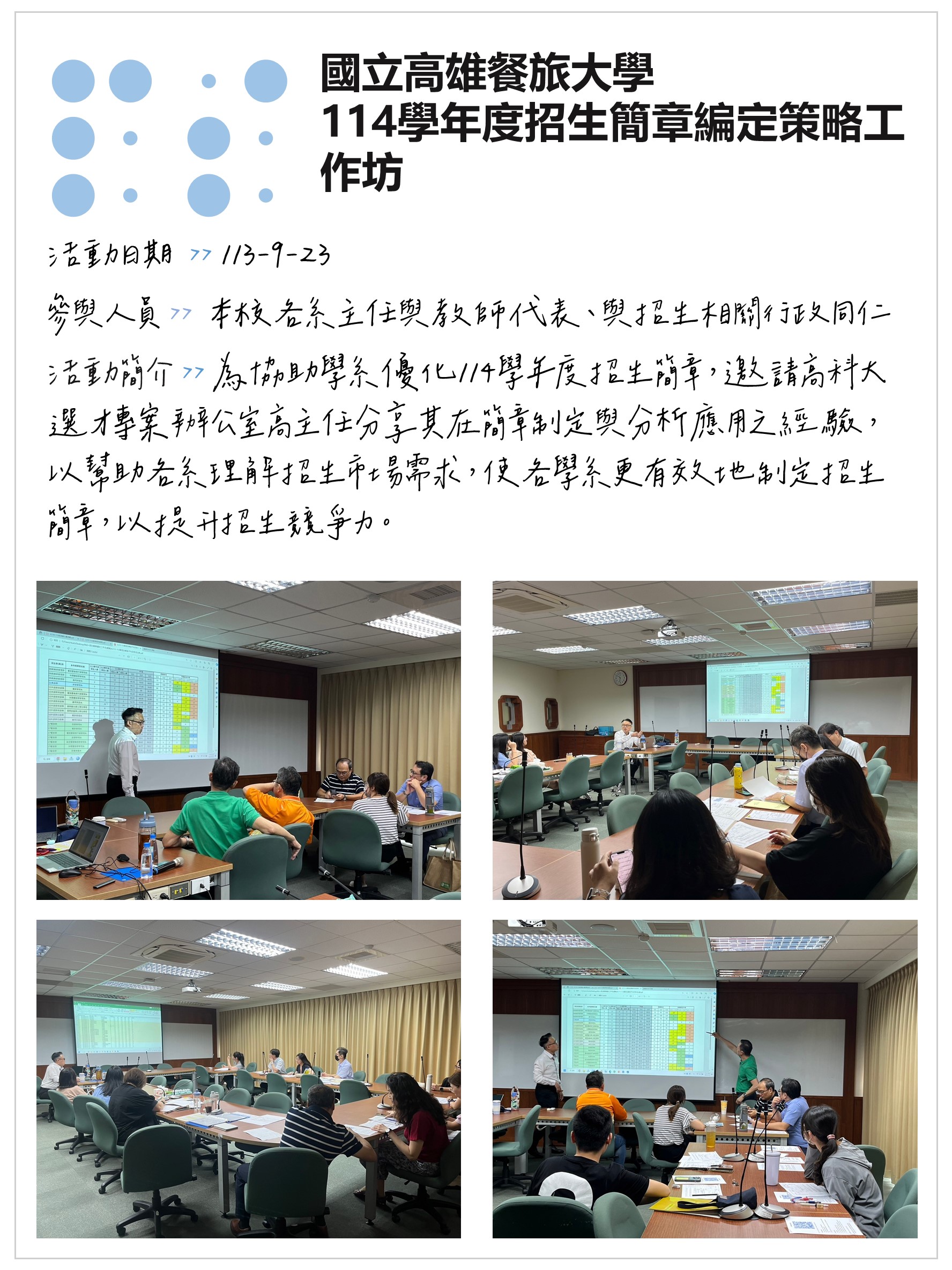 國立高雄餐旅大學「114學年度招生簡章編定策略工作坊」